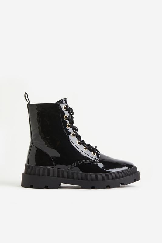 H&M Блестящие сапоги в стиле панк. Классическая шнуровка, боковая застежка-молния и петля сзади для удобства надевания и снятия. Подкладка и стелька из мягкого велюра. Подошва 4,2 см. ❕ПО бирке 35евро 🏷️34р__22см 🏷️36, 🏷️36р __23,2см 🏷️37р,🏷️37р,__23,7см 🏷️38,🏷️38р__24,5см 🛍️ОТПРАВЛЯЮ 2-РАЗА В ДЕНЬ 🚀НОВАЯ и 🚜УКР 💵ПОСЛЕ ПОЛНОЙ ОПЛАТЫ 🍿ТОРГА НЕТ