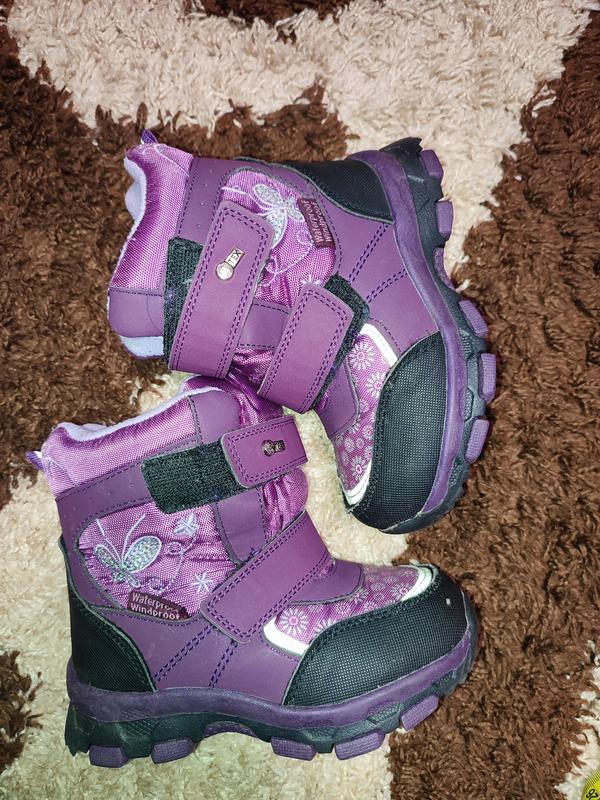 Зимние термо ботинки Tom.m с мембранной і утепленные искусственным текстильным хутром. Очень легкая и комфортная зимняя обувь для девочки. Предназначено до -20 градусов мороза. Подошва полиуретан. Защита носка от повреждения. В идеальном состоянии Фактический замер стельки: 17см. Размер 27.
