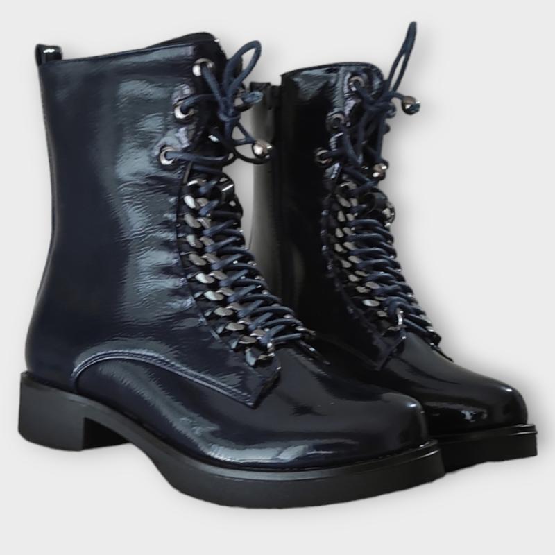 Ботинки деми синие лаковые для девочки на каблуке утеплённые весна осень ( цепь украшение...