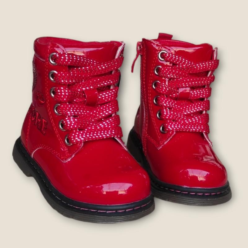 Красивые модные красные лаковые деми ботинки весна , осень для девочки на флисе утепление