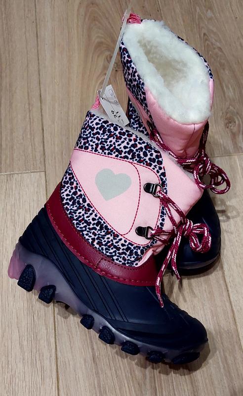 Сапоги-ботинки (сноубутсы) Немецкой фирмы Lupilu, легкие и теплые. Идеальны на слякоть и мокрый снег. Отличного качества. Верх - комбинированные материалы водо, ветронепроницаемые, внутри мягкий меховый утеплитель. Подошва профильная, не скользит и светится с каждым шагом. Есть светоотражающие элементы. Сезон холодная осень-зима). Очень практичная модель. Замеры: 24р.-15,5см 25р-16см 26р-16,5см 28р-18см 29р.-18,5см
