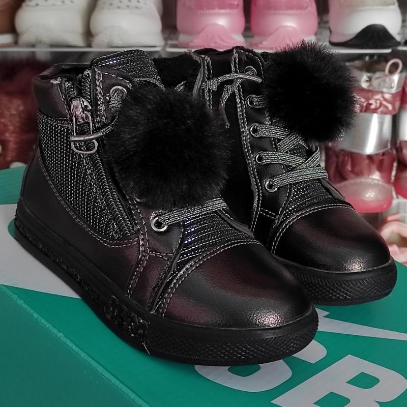 Детские деми ботинки, хайтопы утепленые для девочки шоколад блестят
