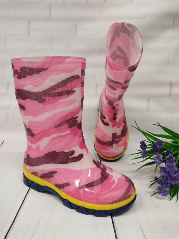 Детские резиновые сапоги "Розовый камуфляж" - Размерный ряд: 27-35 - Верх обуви: ПВХ без фталатов - Подошва: ПВХ без фталатов - Подкладка: 90% полиэстер, 10% эластомер - Способ приготовления: цельнолитой Утепления. По запросу можно приобрести отдельно утепляющую мобильную вставку из искусственного меха или флиса. Розмір см 27 18 28 18,5 29 19 30 19,5 31 20 32 20,7 33 21,4 34 22,1 35 22,8 Детские сапожки производства ООО "ЛИТМА" изготовлены в соответствии с ТУ У 19.3-30064828-001: 2008. По результатам государственной санитарно- эпидемиологической экспертизы соответствуют требованиям действующего санитарного законодательства Украины, что подтверждается экспертными заключениями. Доставка 1-2 дня по всей Украине. Уточняйте наличие у нашего менеджера. Обмен или возврат товара возможен в течение 14 дней. Также доступны другие цвета и модели в нашем каталоге. Отдай предпочтение качеству украинского производителя!