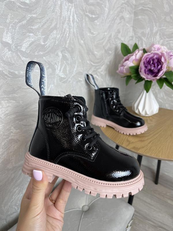 Стильні демі черевички 💗💗💗 Неймовірний дизайн 😍 Якість неперевершена 🔥 Рекомендуємо ! Верх -якісна екошкіра(лак ) Всередині на флісі Устілка шкіряна з супінатором Легенькі та зручні 27р - 17 см 28р - 17.7 см 29р - 18.5 см 30р - 19 см 2шт