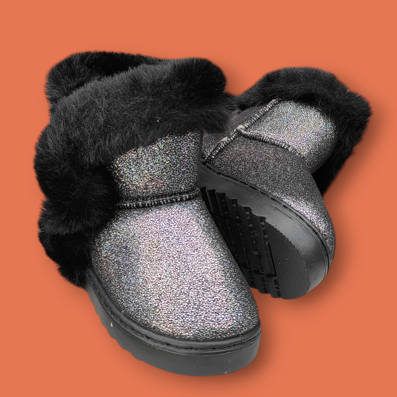 Детские зимние угги для девочки черные замшевые с опушкой для девочки напыление блестящие