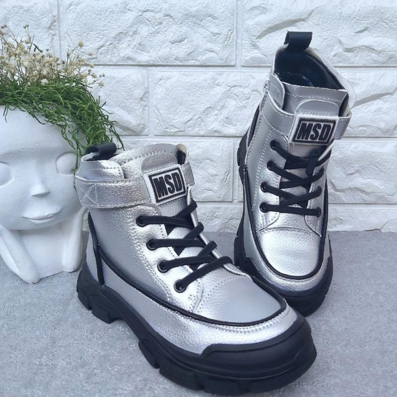Clibee срібно-чорні, верх високоякісна еко-шкіра, устілка шкіряна з супінатором приклеєна (заміри +-2-3мм) утеплені плюшем, захищений перед, регулюються ліпучкою та замочком. 31р устілка 20см 33р устілка 21,5см 35р устілка 22,8см 36р устілка 23,5см