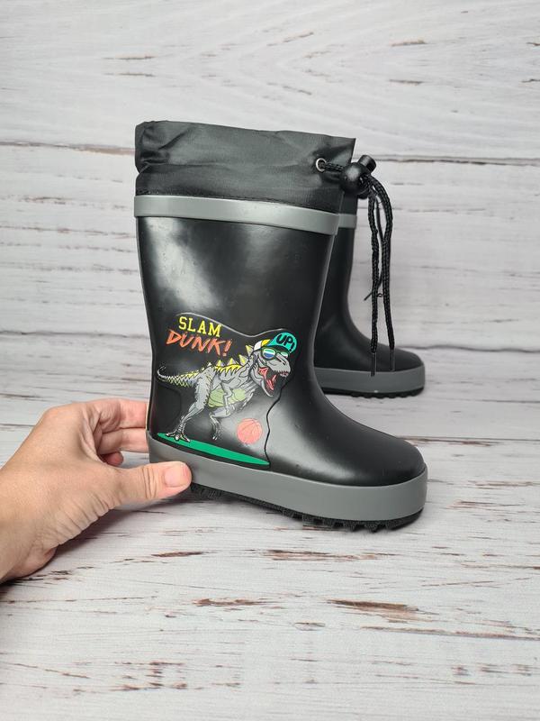 Дитячі гумові чоботи для хлопчиків Tom.M Артикул: 10590B Усередині обшиті байкою (не виймається!), є зручна вологопоглинаюча устілка. Чоботи дуже стильні, м'які Колір: чорний Легкий та практичний матеріал PVC. PVC - це матеріал, який зовні та на дотик нагадує гуму (м'який). Антиковзна підошва Вгорі чобіт можна затягнути на спеціальну шнурівку що забеспечить непроникання води через верх. Дуже зручна та практична модель у дощову погоду. Виміри вказані по довжині знімної устілки = внутрішнім вимірам чобота