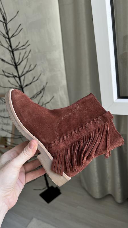 Ботинки замшевые без утеплителя, осень-весна, внутри хб плотная, сбоку бахрома. 33 р-21 см стелька. Плотная качественная подошва. Обуты были до 5 раз, идеальное состояние
