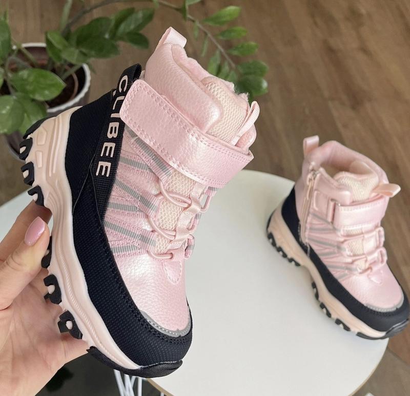 Без кнопки заказать!!!️ Зимние ботинки из новой коллекции ТМ Clibee Сочетание цветов Теплые и качественные Верх качественная экокожа. внутри овчина (60%) Фиксация молния, липучка, шнуровка -резинка 29 размер 18.5 см Запас брати 1-1,5 см !!!!