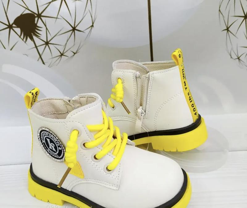 Стильные и очень модные детские демисезонные ботинки для девочек. Ботинки Канарейка внутри мягкий плюш, стелька кожаная с супенатором. Ромир 22, длина стельки - 14 см Полностью новые с биркой.