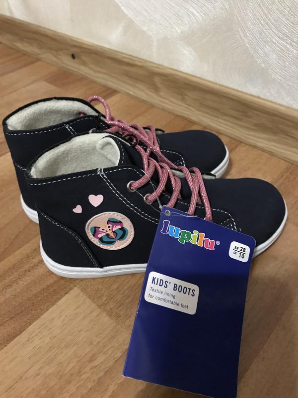 Удобные ботинки от немецкого бренда Lupilu. Ботинки утепленные подойдут на прохладную весну и осень. Зашнуровываются блестящими шнуровками (без замочки). Не тяжкі. Размер 25 - 16,5 см