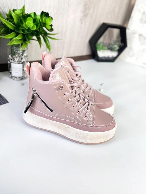 Неймовірно гарні та стильні чобітки пудрового кольору. Фіксуються збоку на блискавку. Спереду шнурівка-резиночка. Утеплені м'яким флісом. Устілка шкіряна із супінатором. 😍 36р. - 23,0см 37р.-23,5см 38р. - 24,3см
