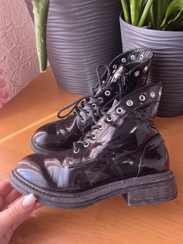Лаковые ботинки на шнурках Украшены босинами стан идеал Размер 33 21 см стелька