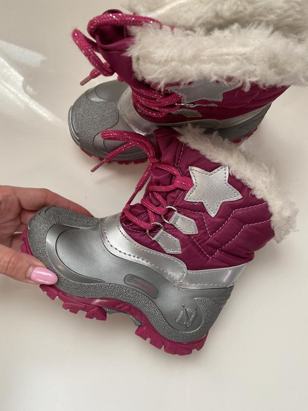 Зимние ботиночки на девочку, очень теплые, утепленные мехом внутри, состояние отличное, резиновая галоша, не промокают, не продуваются..регулируются шнурками..качество супер, размер 25, стелька 15-15.5 см.