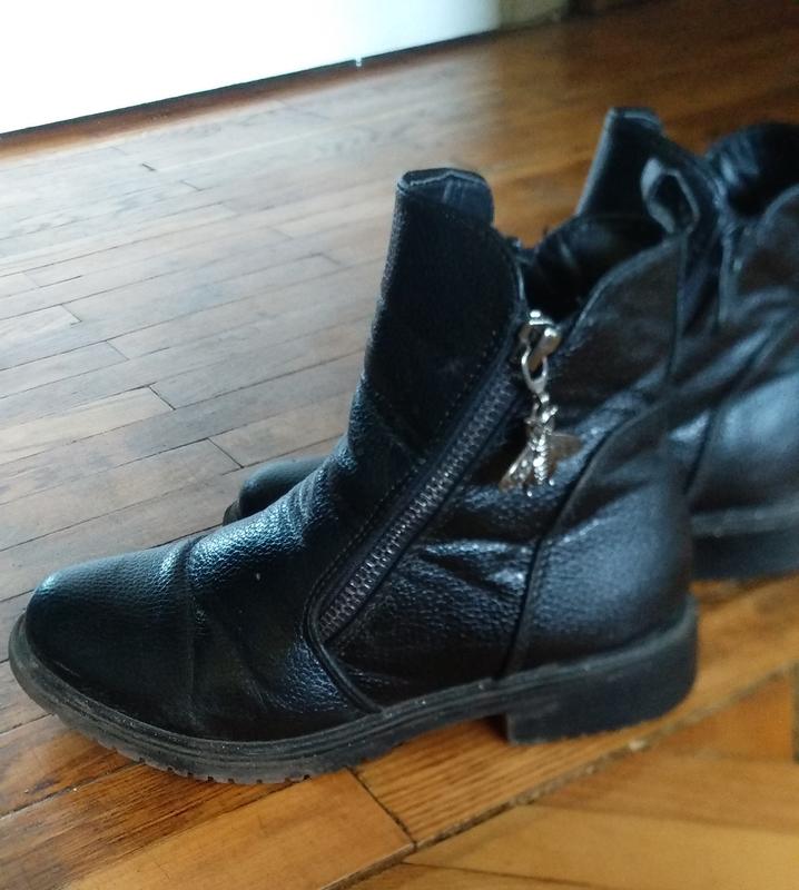 КОЖАНЫЕ размер 33 по подошве 23 см. стелька не высовываются примерно 21,5-22 см. Состояние как новые