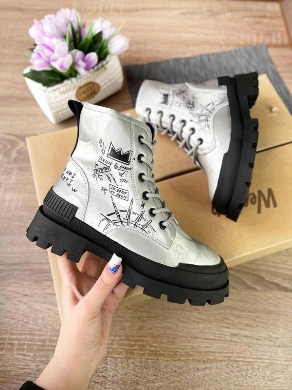 😍Какие они крутые, стильные серебряные с перламутром ботиночки. Дизайн просто непревзойденн. Фиксируются сбоку на молнию. Спереди на шнуровке. Утеплены флисом. Стелька кожаная с супинатором. Носочек с защитой от взбивания. 😍 35р. - 23,0см