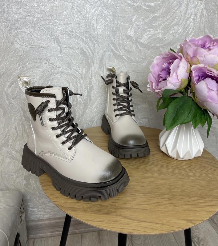 Стильные деми ботиночки 💗💗💗 Невероятный дизайн 😍 Качество непревзойденное 🔥 Рекомендуем! Верх -качественная экокожа Внутри на флисе Стелька кожаная с супинатором Легкие и удобные 33р - 22 см 34р - 22.8 см 2шт 35р - 23.4 см 3шт