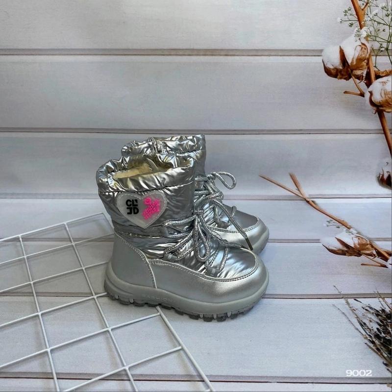 Детские сапожечки для маленьких модниц Материал эко кожа и водонепроницаемый материал. Внутри густой иск мех. Подошва из прочной резины. застежка молния ( есть утяжка шнурочком) 25-16 см