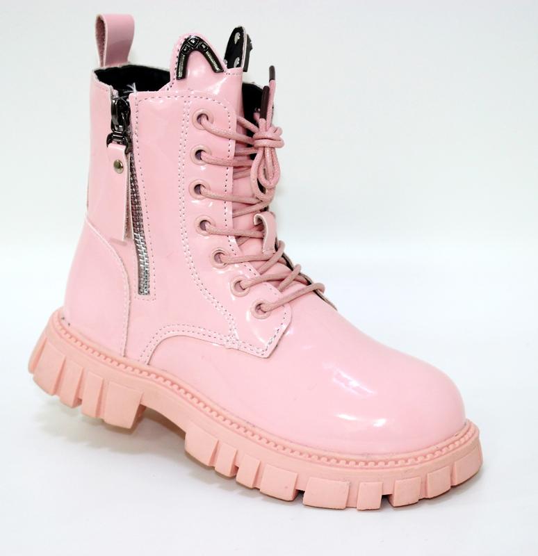 Розовые лакированные ботинки на тракторной подошве с ушками и на молнии