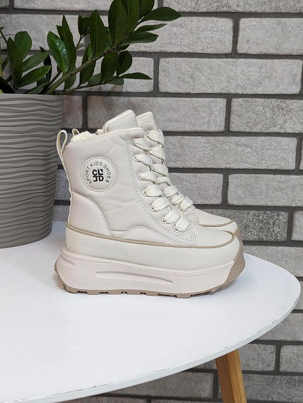 Стильная зимняя новинка для девочек от фирмы Jong Golf. Верх качественная эко кожа. Внутри густой, теплый мех ( натуральная овчина 60%). Фиксация на шнуровке. Сбоку есть замочек. Выглядят мега круто Размеры: 32р-20,4см 33р-21см 34р-21,5см-2шт 35р-22,3см-2шт 36р-23см 37р-23,5см ✅✅Цена 1200грн