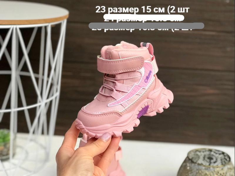 Зимние ботиночки ТМ Clibee Отличное качество Верх качественная экокожа, внутри густая овчина (60%) Фиксация молния,шнурки-резинки и липучка Защита носочка 23 размер 15 см (2 шт
