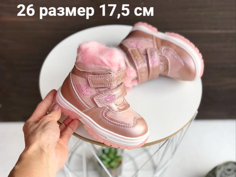 Суперовые ботинки для модниц Качество на высоте фирма Clibee Верх качественная экокожа . внутри овчина (60%) Фиксация молния Две липучки 26 размер 17,5 см