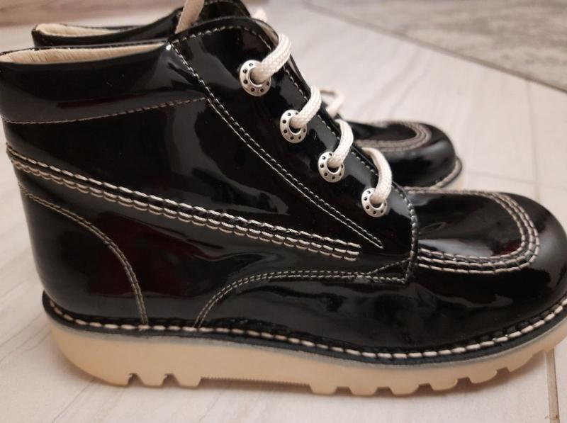 Новые испанские ботиночки на девочку. В наличии р.32 и р.35. Лакированная натуральная кожа извне и натуральная кожа изнутри. Цвет-черный. Нереально стильная обувь.