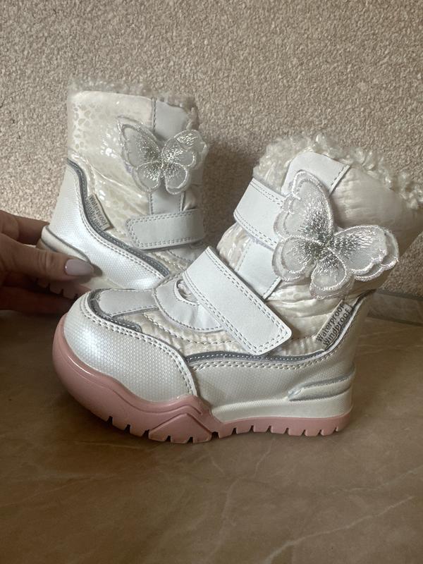 Очень классные белоснежные и теплые ботиночки для девочки, практически без следов носки, единственное, что надо заменить лепучку, потому что плохо трогает уже, а остальное все супер, 24 г.