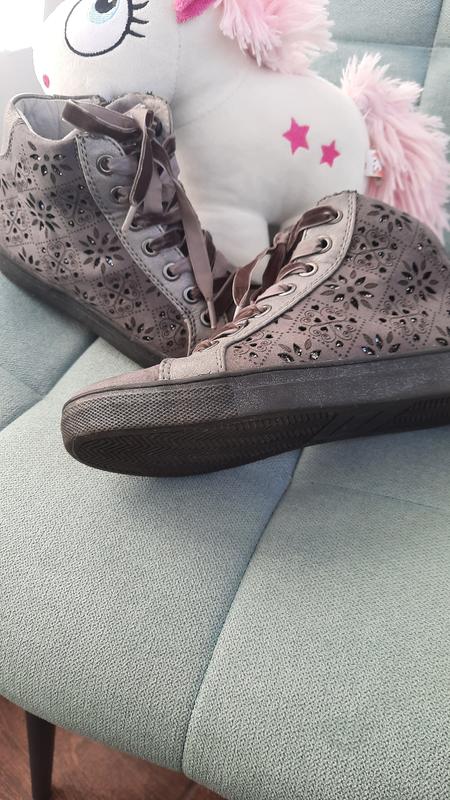 Деми ботиночки для девочки. Экозамш, очень красивые ажурные тиснения с серебристым напылением по бокам. Подошва тоже с легким напылением. Шнуровки с бархатным напылением. Утепленные текстилем, потолка кожаная. Размер 33, стелька 21 см.