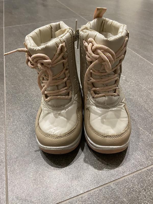 Ботинки в отличном состоянии, Lc Waikiki. Размер написанного 26. Размер стельки, примерно, 15,5 см, но она не вынимается. Очень теплые, ножки ни разу не были холодны. Утеплитель овчина. Верхнее покрытие водоотталкивающее, красиво вытирается салфеткой, нет ни одного пятна! Имеются нюансы тельки на подошве, но от обычного пользования обувью)