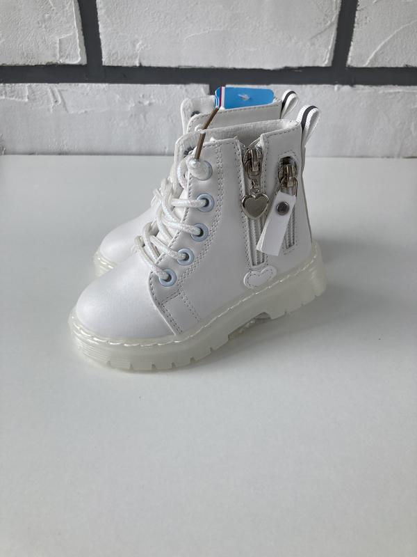 Ботинки для девочки. Демисезонные. Размер 21; 22; 23; 24. Цвет: белый. Материал: экокожа, байечка. Подошва: силикон. Стелька утепленная, без супинатора. Плотный носок и задник. Фиксация на замок, есть шнурок. По весу легкие, практически неощутимые на ножке, отличный вариант на каждый день. Маломерки, выбирайте размеры по замерам стельки. Длина стельки и наличие размеров: 21-12,7см, 22-13,2см, 23-13,7см, 24-14,2см. Отправка Укрпочта, Новая почта, Meest. Переходите в профиль, и смотрите другие объявления!