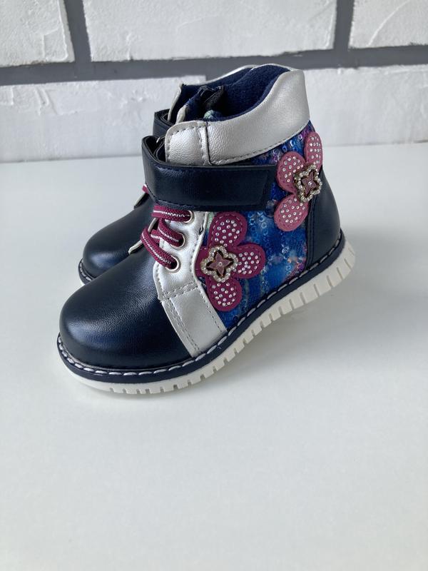 Ботинки для девочки. Демисезонные. Размер 22; 23; 25; 26. Цвет: синий. Материал: экокожа, флис. Подошва: резина. В середине кожаная стелька с супинатором. Плотный носок и задник. Фиксация на замок, есть липучка. По весу легкие, практически неощутимые на ножке, отличный вариант на каждый день. Длина стельки и наличие размеров: 22-13,6см, 23-14,3см, 25-15,5см, 26-16,7см. Отправка Укрпочтта, Новая почта, Meest. Переходите в профиль, и смотрите другие объявления!