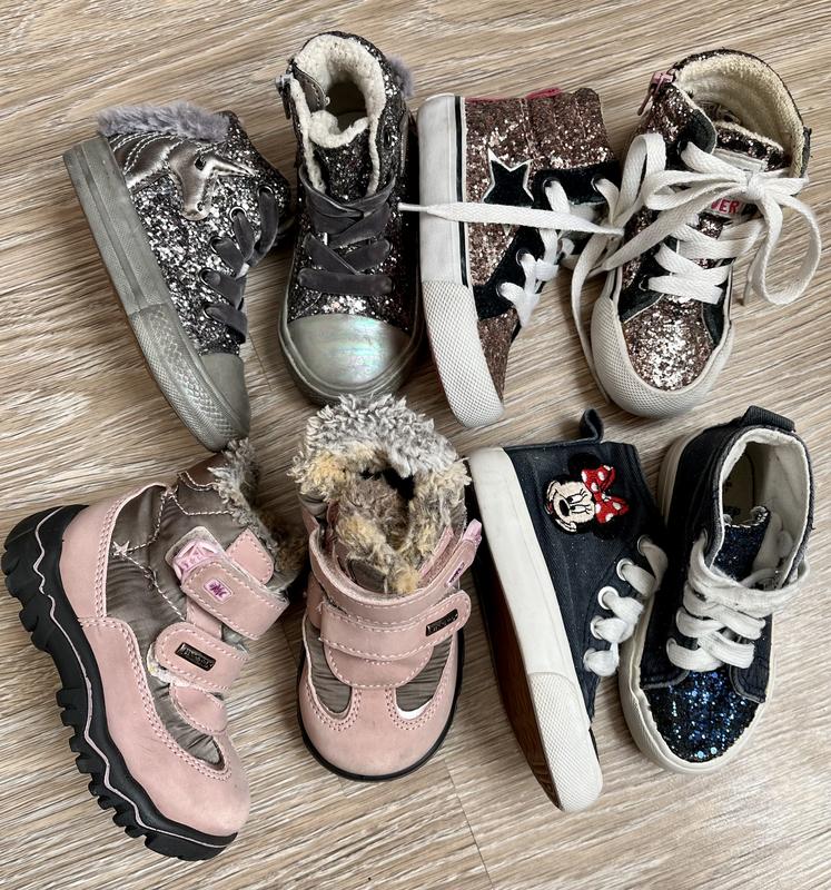 Черевички осінь/весна, розмір 21,5-22, сині-23 рожеві теплі, решта-без утеплення Стан хороший, але не ідеальний(є подряпини, деякі блискітки повідлітали За додатковими фото і замірами-пишіть Ціна за одні 150 грн