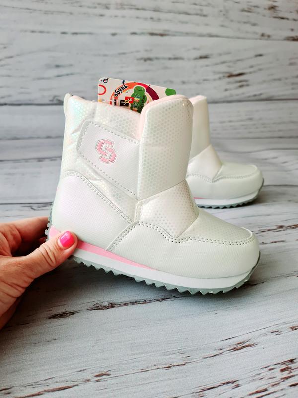 Зимние сапоги/дутики для девочек фирмы Jong-Golf Артикул: A40250-7 Сезон: зима Материал внутренний: мех смешаный состав 60 % овчина Материал внешний: плотная водонепроницаемая плащевка с технологие WATERPROOF, и качественная эко кожа Цвет: белый Очень легкие ботинки, жесткая пятка, мягкие и гибкие. Очень стильно смотрятся на ножке Удобная застежка липучка с двух сторон Размеры с 25 по 28 по стельке полностью: 25р. по стельке 16,0 см 25р. по стельке 16,0 см 26р. по стельке 16,8 см 27р. по стельке 17,3 см 28р. по стельке 17,8 см