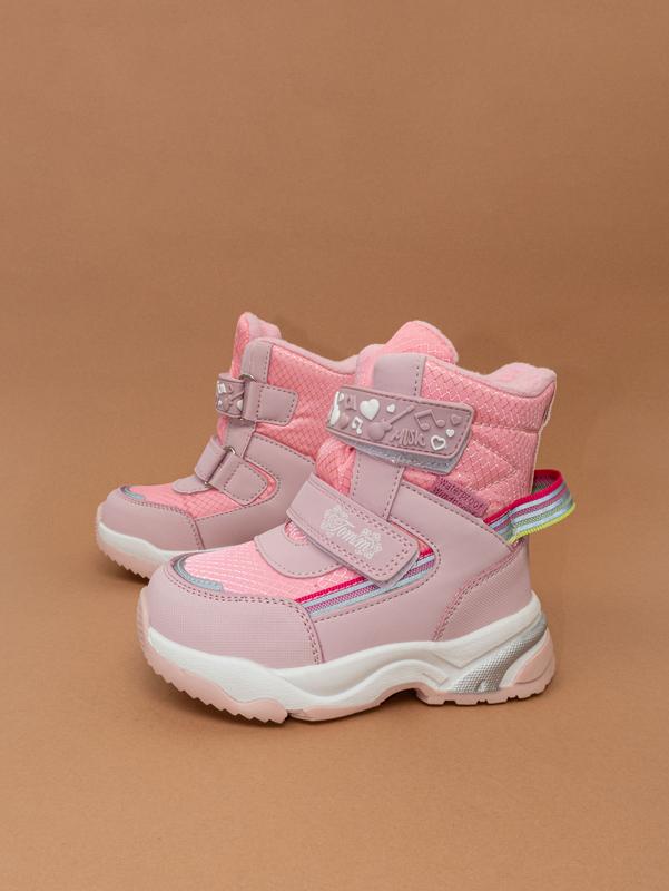 3021365 НОВА КОЛЕКЦІЯ ЗИМА 2023/24 від ТМ TOM.M (Китай). 22 розмір 14,5 см 23 розмір 15 см 24 розмір 15.8 см 25 розмір 16.3 см 26 розмір 17 см 27 розмір 17.5 см Нереально стильні дитячі зимові термо чобітки для дівчаток. Колір - рожевий з світловідбиваючими елементами на білій підошві, декоровані липучками, верх - штучна шкіра/поліестер, підкладка та устілка - вовна. Водо- та вітронепроникні. Густа та щільна вовняна підкладка, устілка виймається, на липучках. Легенькі, теплі та зручні. Наложеним платежем відправляємо по передоплаті 150 грн. Є повернення та обмін! Пакування безкоштовне. Фото зроблені нами. Швидка відправка з власного магазину - 1-2 дні. Пишіть нам - з радістю допоможемо підібрати розмір, зробимо додаткові фото та відео та відповімо на всі питання!