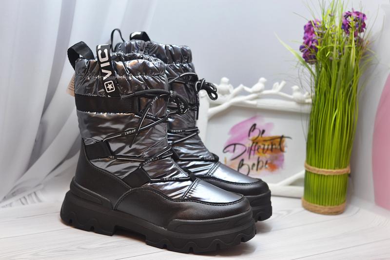 Крутезные зимние дутики от Tom.m. Спереди на шнуровке, в стиле луноходов. Сверху резиночка по обхвату ножки, сбоку молния. Материал верха - эко.кожа+ плащевка. Внутри утеплены овчиной (60% натур.). Стильно смотрятся на ножке. НАЯВНОСТЬ 35 размер - 23 см - 2 шт ✅ Цена 1180 грн