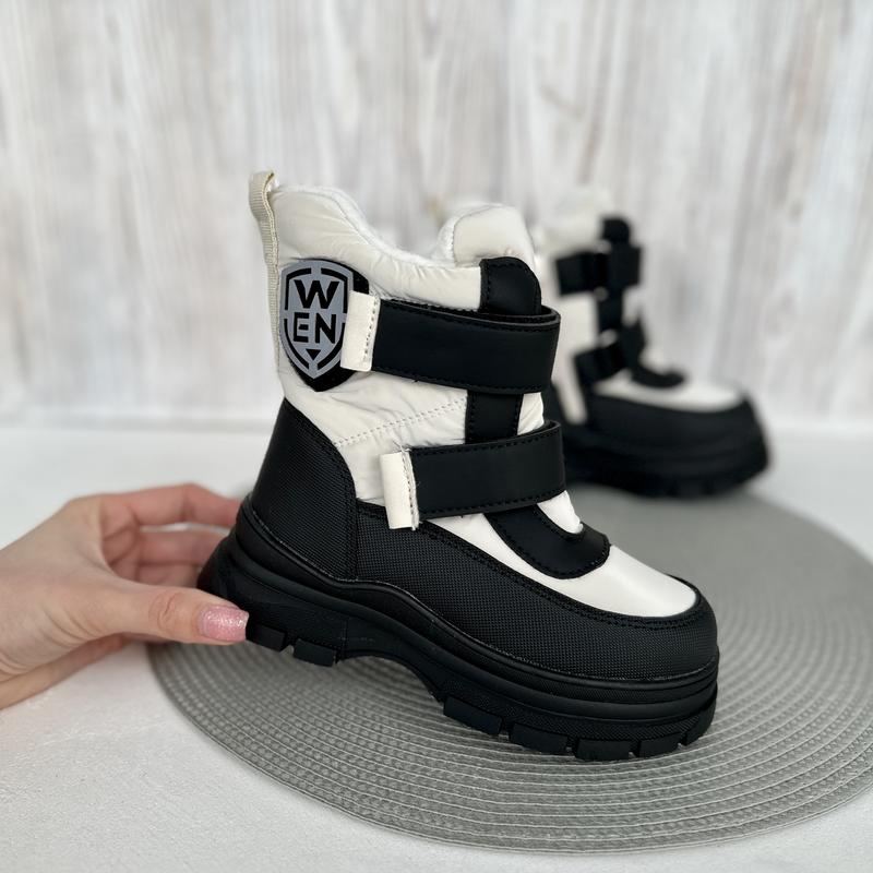 Ще одна новинка дутиків ☃️ Зовні штучна шкіра та плащівка на мембрані (така плащівка комфортна в носінні, не парить та відштовхує воду, а також вітростійка). Всередині утеплені овчиною. Устілка також утеплена. Непромокаючі та теплі 👌 Розміри: 27-17 см 28-17,8 см 29-18,4 см (2) 30-19 см (2) 31-19,6 см 32-20,4 см