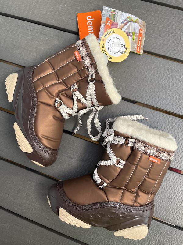 Зимние сапожки Demar, внутри натуральная овечья шерсть, очень теплые, выдерживают морозы до -20 Размер по сетке: 20/21 размер - 13,5 см 26/27 размер - 17 см Рекомендуемый запас для зимней обуви 1-1,5 см