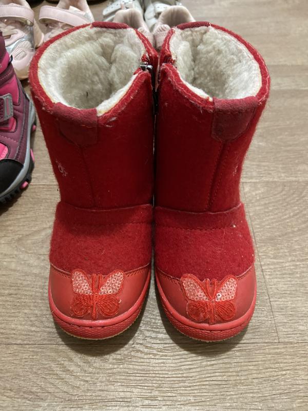 Валянки зимние, состояние очень красивое. Теплые!!Носилы на смену термо ботинкам, когда были морозы, а также просто обзавали их, так, как они дышащие и ноги не перегревались. Спереди были немного сдерты, то мы наклеили бабочек) Размер указан 26, но по факту маломерят. Стелька полностью 17 см, но до загиба 16 см. Есть безопасная доставка для примерки.