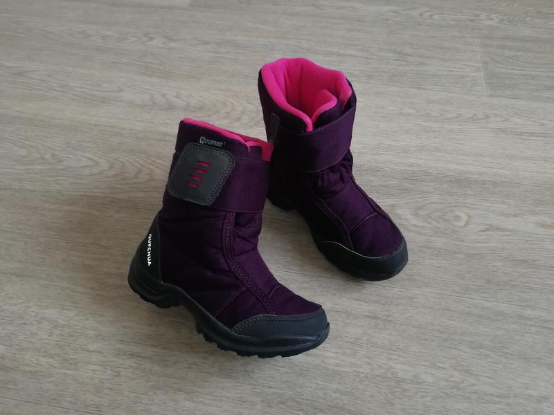 Термо ботинки зимние Quechua – очень теплые, удобные. Размер – 29, длина по стельке – 18.5 см. - на широкой липучке - на мембране Waterproof (дышащая мембрана, препятствует проникновению влаги и холодного воздуха внутрь изделия при этом, позволяя влаге испаряться, таким образом, обеспечивая комфорт) - надежная подошва. В отличном состоянии.