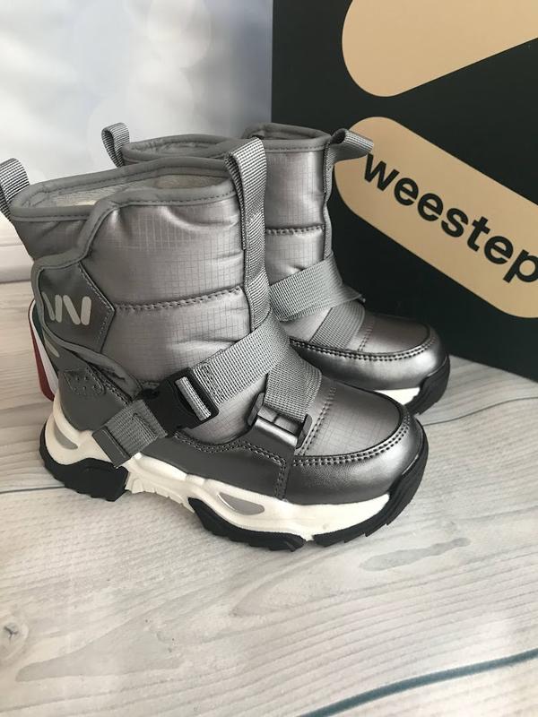 Арт: 310 Термо черевики Weestep Колір сірий Матеріал зовнішній: еко шкіра в комбінації з водо- і вітронепроникним матеріалом із термостійким шаром, всередині густа вовна. Підошва протекторна не слизька. Розміри 27р - 17.5см 28р - продан 29р - 19см 30р - 19.8см 31р - 20.5см 32р - 21см продан