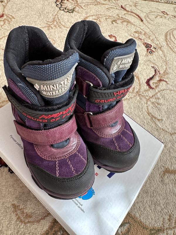Зимние ортопедические ботинки. Изготовленные из кожи, замши в высокотехнологичной ткани SYMPA-TEX. Благодаря этой ткани обувь дышит и не накапливает влагу. Благодаря ребристой подошве не слипают. Внутри натуральная шерсть. Выдерживает мороз до -30. Благодаря липучкам подходит на дорогой объем ножки.На длину стопы 15,5 см длина стельки 16,5 см.