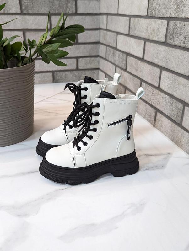 Невероятно стильная Зимняя новинка для девочек от фирмы Paliament. Качество бомбезнение Верх качественная эко кожа. Внутри утеплены густым теплым мехом ( натуральная овчина 60%). Фиксация на шнуровке. Сбоку есть замочек. Легкие и удобные. Размеры: 34р-22,3см