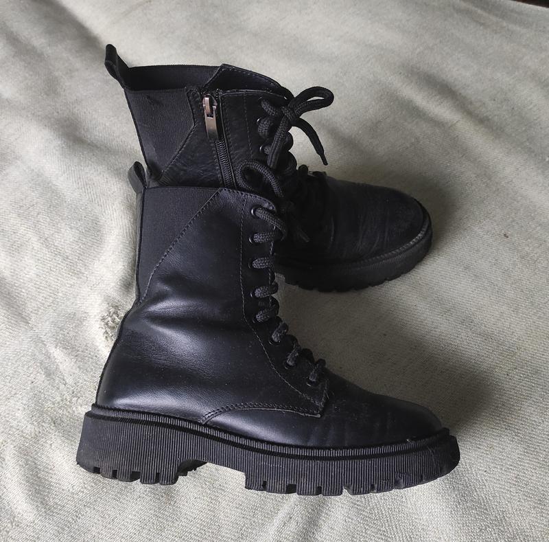 Осенние кожаные ботинки для девочки. Стелька 23 см. На шнурках и сбоку на молнии. Производство Украина