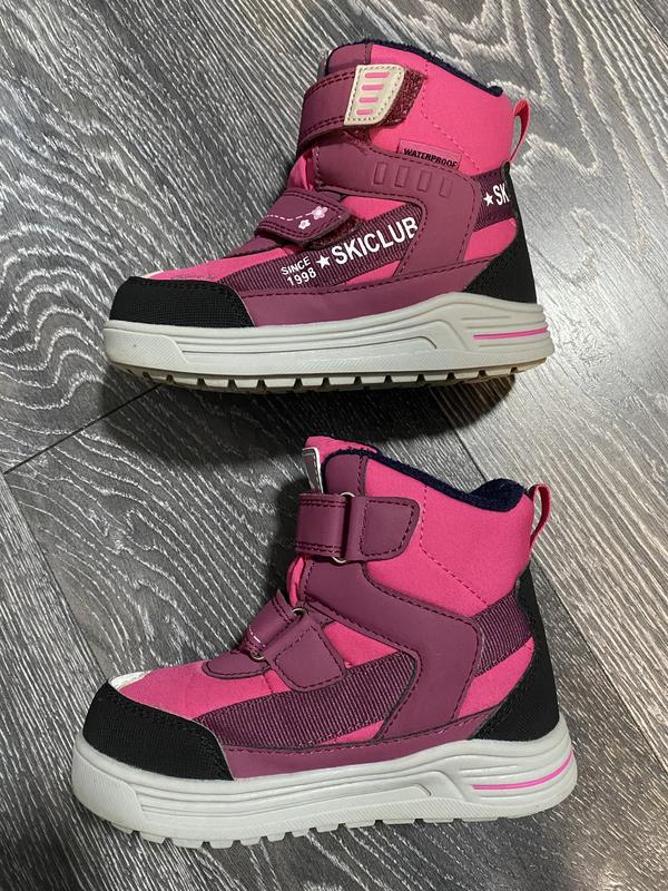 Яскраві і теплі термо чобітки, устілка 16 см, мтан ідеальний , дуже теплі і зручні, геть трошки є стерте на носочках (фото додаю)