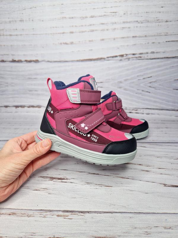 Термоботинки B&G-Termo для девочек Артикул: TKT23-14/20 Материал внутренний: натуральная шерсть + термо стелька (хранит тепло при -30С) Материал наружный: водоотталкивающий текстиль по технологии Waterstop + искусственная износостойкая кожа (PU). Что такое мембрана BG-QweenTEX? Это: влагонепроницаемость + термоэффект + температурный режим от +10 до -30°С. Термо стелька имеет три слоя: 1. Антиаллергенный материал, содержащий 50% натуральной шерсти, поддерживает тепло и создает комфорт при ходьбе. 2. Специальный фольгированный внутренний слой препятствует охлаждению, отражает тепло ступни внутрь. 3. Специальный перфорированный вискозный пласт поглощает влагу и дает стопе свободно дышать. Подошва в термоботинках B&G-Termo: обеспечивает превосходное сцепление с любыми видами поверхности + имеет высокую устойчивость к деформациям, низким температурам, а также гарантирует водонепроницаемость." Размеры с 25 по 30 по стельке полностью: 25р. по стельке 16,8 см 26р. по стельке 17,5 см