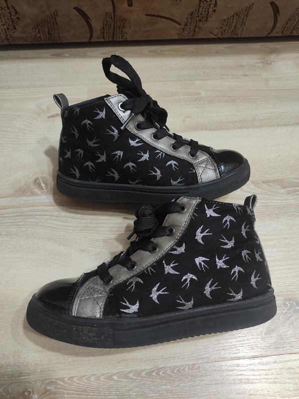 Красивые осенние ботинки, нарядные ботиночки на стопу 18,2-19 см Состояние очень хорошее, дефектов НЕТ. Следы носки только косметические потертости поверхностные кое-где на внешней ткани есть небольшие и чуть отклеилось в одном месте (см. на последних фото) - при носке почти не видно, на функционал не влияет. В цене все учтено! Еще прослужат очень долго. Удобно регулировать обьем шнуровкой, а при одевании пользоваться молниями. Внутри совсем небольшой синтепоновый утеплитель. Очень удобные, мягенькие, на прохладную и холодную осень идеально. Качество очень хорошее! Наши любимые, носились регулярно. Длина стельки 19 см полностью внутри ботинка (по бирке не указан размер) до загиба пятки. Мы носили на стопу 18,2-19 см Фото на теле НЕТ и не будет Отправка только Новой или укрпочтой. Обмена и возврата НЕТ