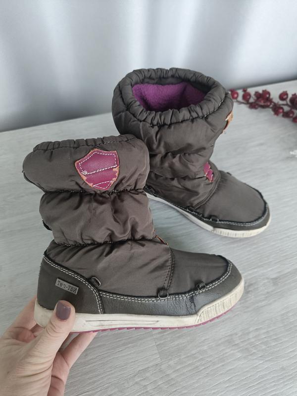 В очень хорошем состоянии, очень удобные для ребенка - теплые, мягкие. Подошва резиновая. Легко одеваются - идеальны для ребенка в садик. Мы носили зимой, но на не сильные морозы. на 20-21см