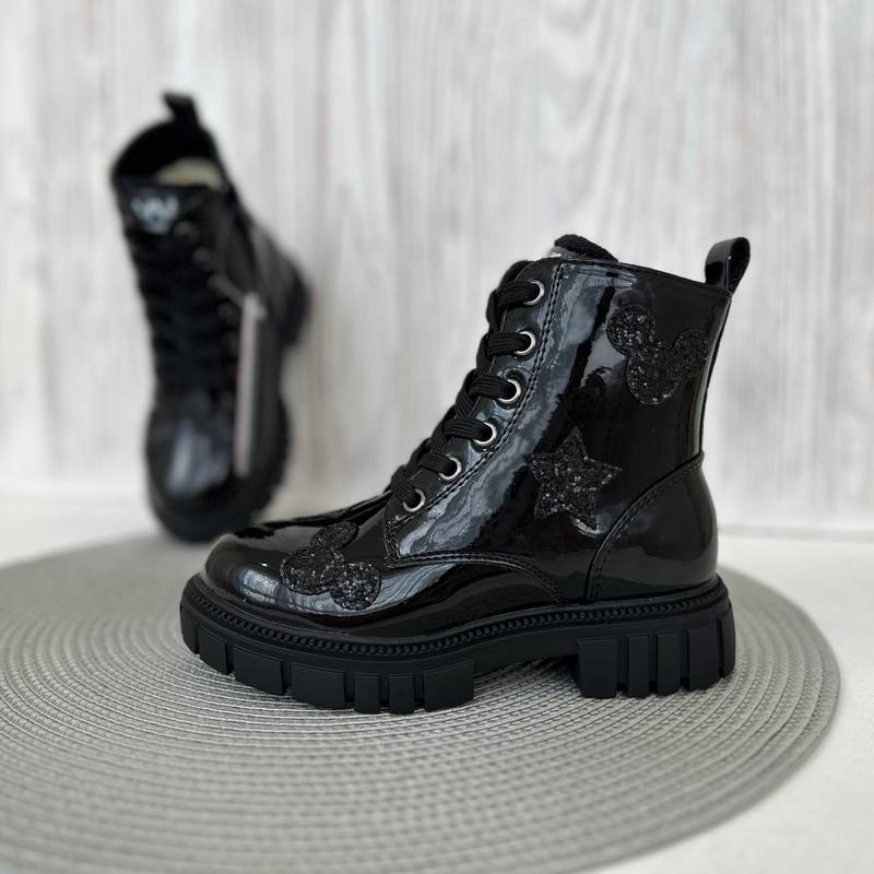 Зимние ботинки от TM Weestep 🤍 Внутри натуральная шерсть. Присутствующий боковой замок и шнурки (завязываются). Цвет черный. Размеры: 27-17,5 см 29-18,8