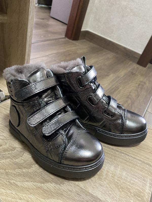 Черевики нові, не підійшов розмір, трохи промахнулась, коли купувала. Дуже стильні та гарні. Розмір 27. Натуральна шкіра та хутро. Турція, гарна якість, у нас були такої фірми осінні черевики, чудові.